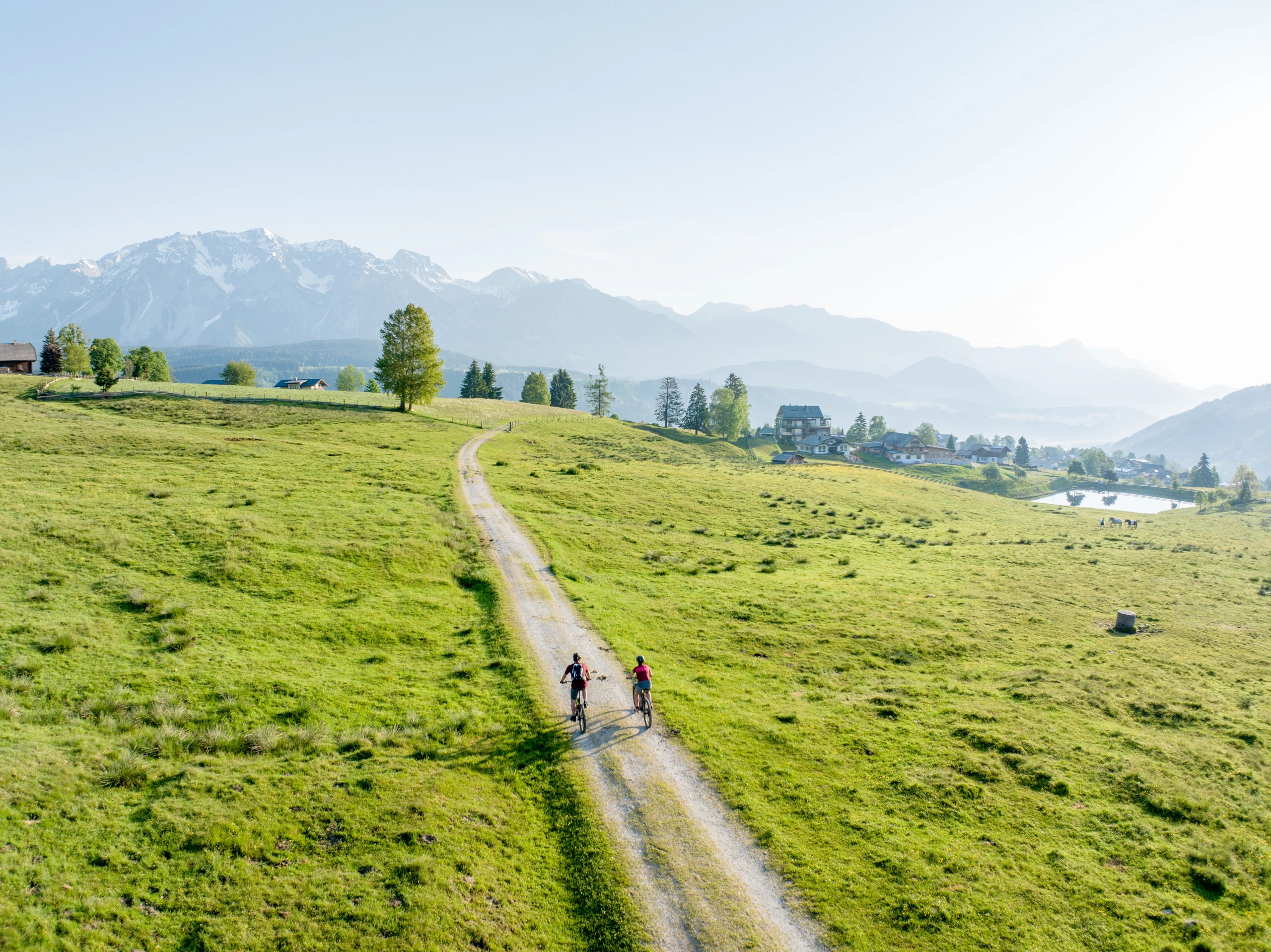 Lauf-, Rad- und Wanderwege beginnen direkt vor der Hoftür. Genießen Sie den freien Blick auf das Dachsteinmassiv auf 1.170 Metern Seehöhe. Ob eine gemütliche Almwanderung mit der ganzen Familie, eine fordernde Gipfeltour oder eine Runde auf dem weitläufigen Plateau-Wegenetz der Ramsau – hier findet jeder sein Tempo und seine perfekte Herausforderung.