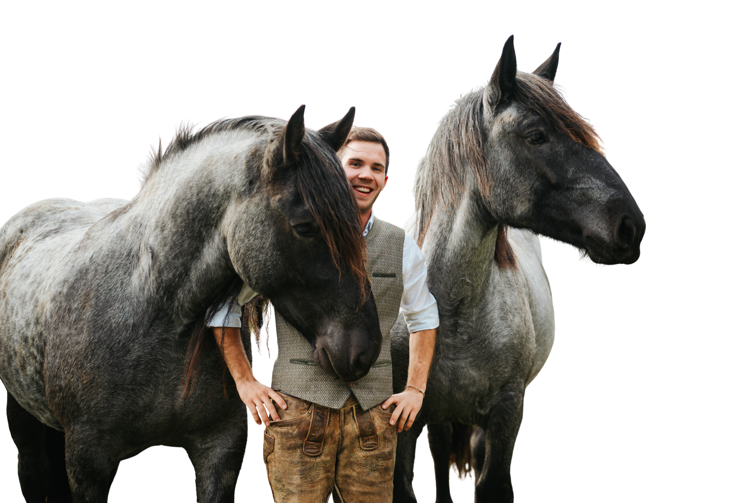 Am Ederhof züchten wir Noriker in einer besonderen Schattierung. Die sogenannten „Mohrenköpfe” mit ihrem mausgrauen Fell. Diese seltene Farbe wird heute nur von wenigen Enthusiasten gepflegt und ist unter Pferdeliebenden besonders begehrt. Die kräftigen und gutmütigen Tiere sind vielseitige Freizeitpferde. Im Winter ziehen sie stolz unsere Schlitten durch die Ramsau, im Sommer verbringen sie ihre Tage auf der Alm. Wer unsere Noriker also in einer ganz besonderen Atmosphäre erleben möchte, unternimmt im Winter eine Fahrt mit dem Pferdeschlitten.